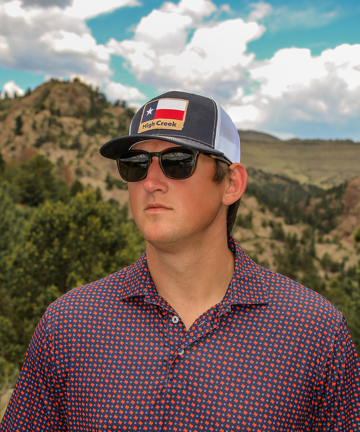 High Creek Rustic TX Flag Patch Hat Navy & Red