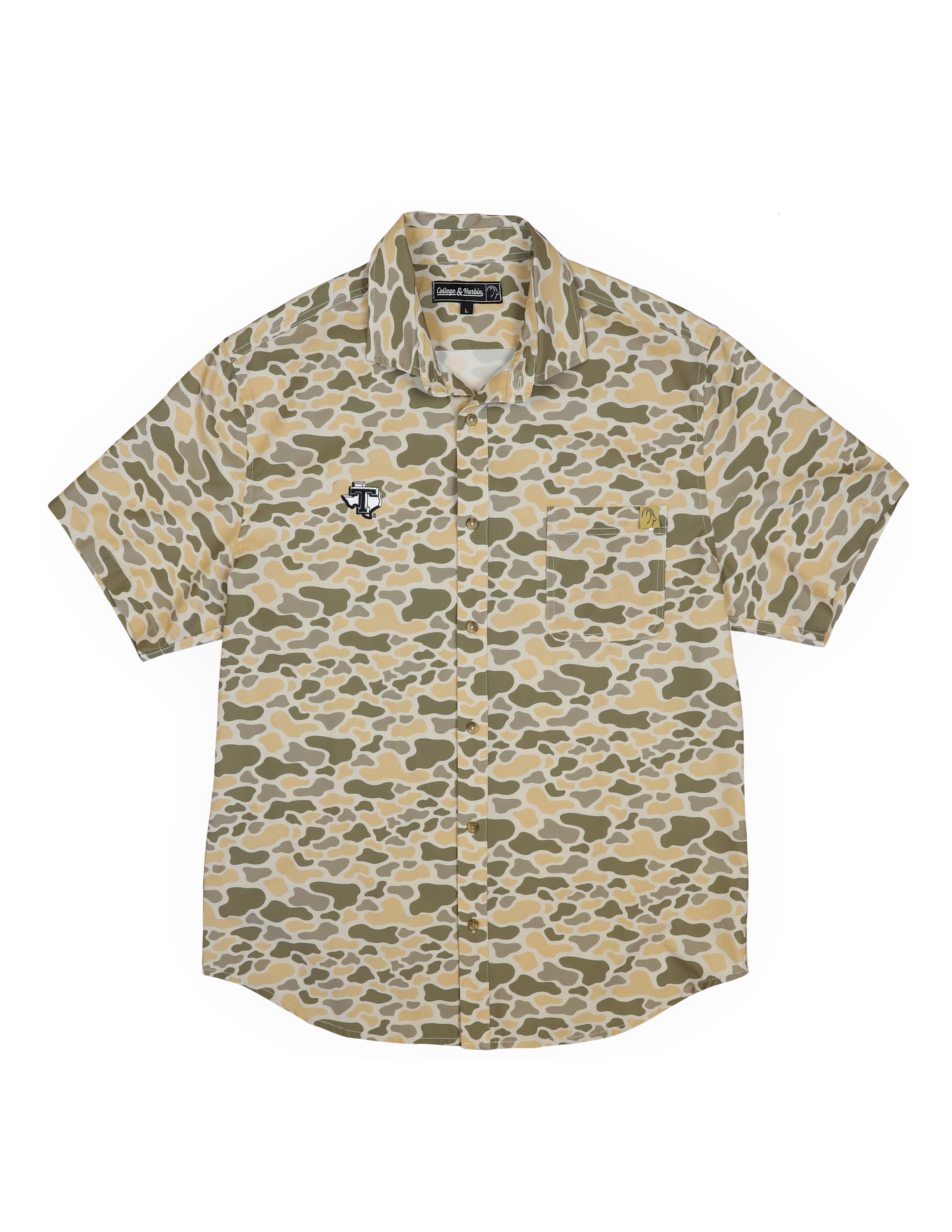 Equal parts sharp and functional, The Burk is the short-sleeve button-down built for the heat and hustle of life outdoors—now finished with an embroidered TSU logo laid clean over our signature Cripple Creek Camo.