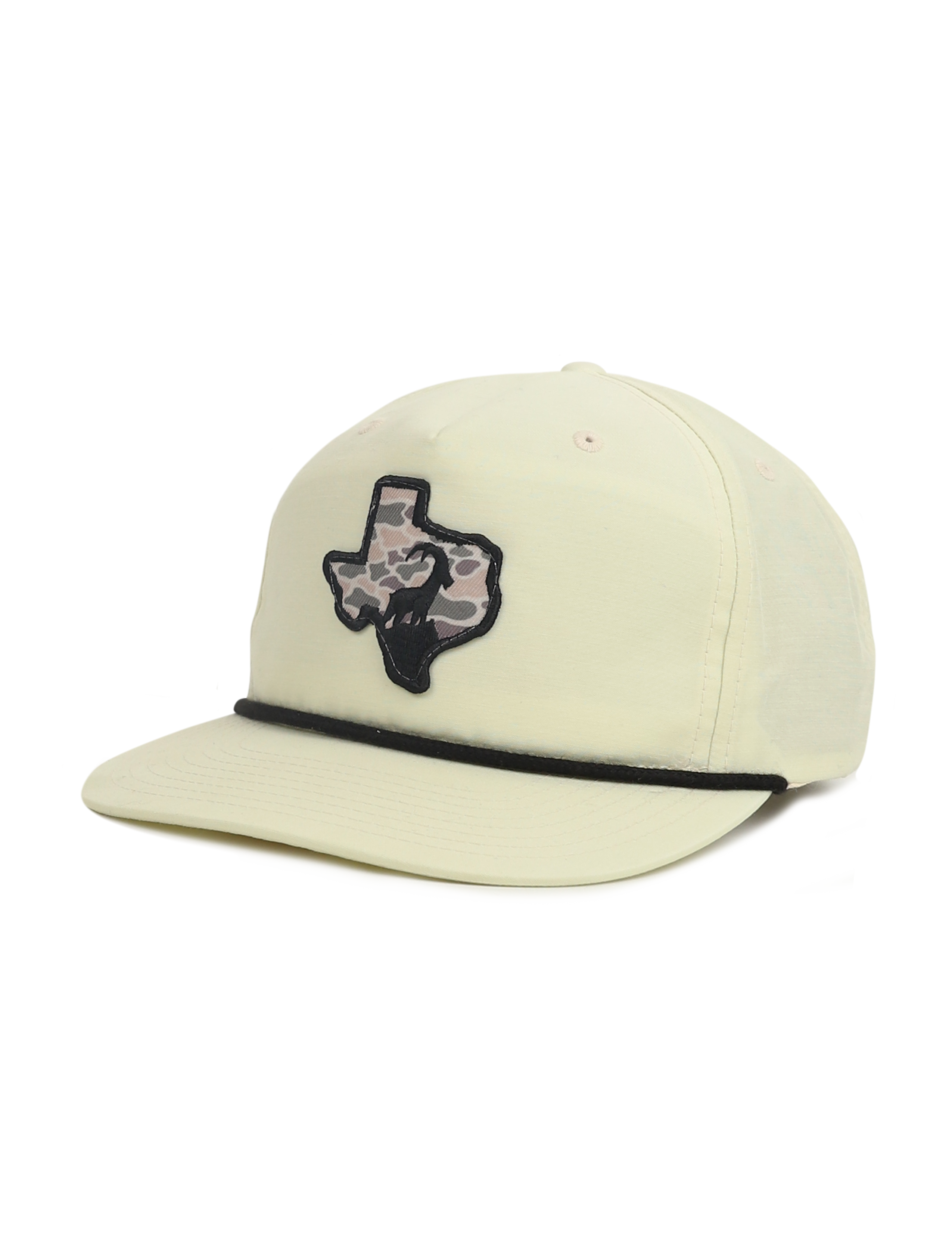 A hat built like Texas—bold, rugged, and unbothered by the heat. The “Camo Ibex Texas” Hat brings together backcountry grit and Lone Star pride with a clean, modern profile. The flat bill and classic mid-pro crown give it just the right shape, while the white rope detail adds a touch of vintage edge.